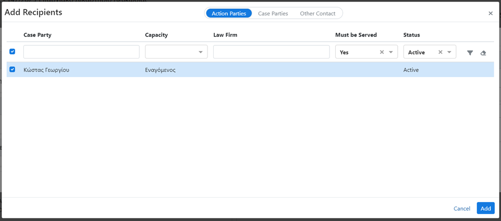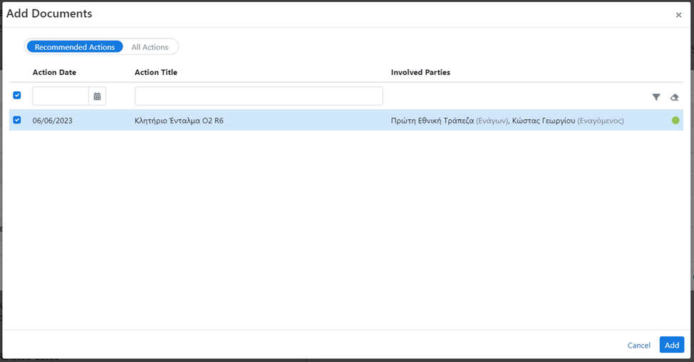 Click on the + Document button and select the Actions with the documents that need to be served.