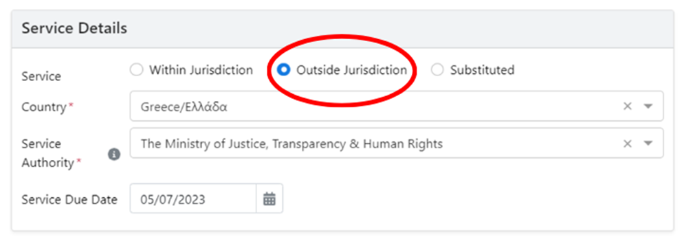 Note: Service Authority field will be visible only when choosing to serve a document to countries with known authorities.Service Due Date: the deadline for the completion of the service.