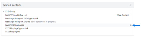 On the Related Contact widget, under the Overview tab, click on the three-dots icon and then Delete Group.