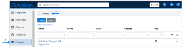 Select Contacts from the Main Menu and then click on Filters to expand the filters section.